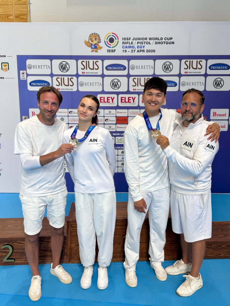 20-летний Рамир Николаев и 17-летняя Ксения Татаринова выступили в упражнении «Трап, смешанная пара» и завоевали серебряные медали.